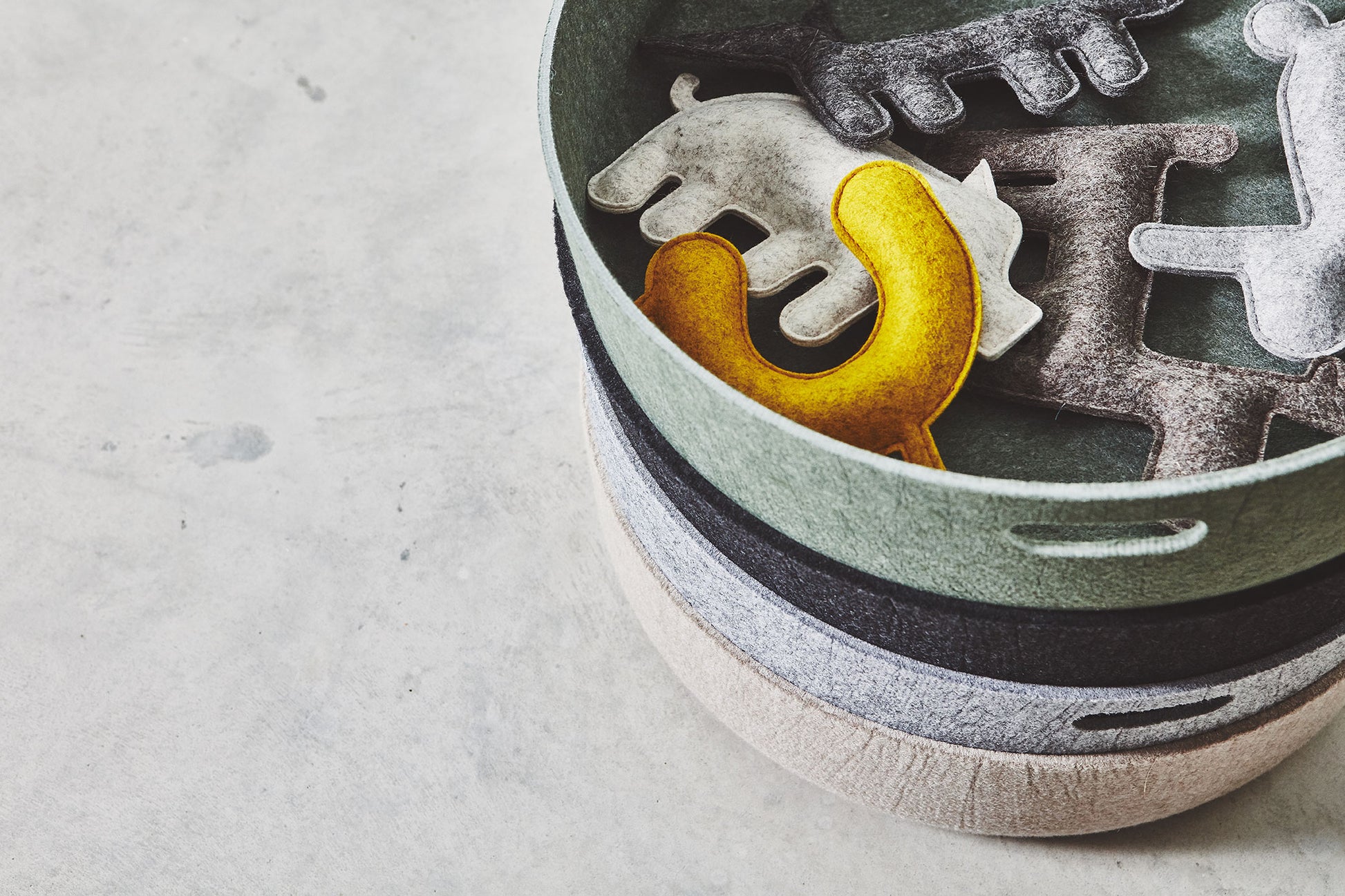 Cesto besteht aus einem speziell geformten Vlies. Die für die Herstellung des Korbs verwendeten Fasern werden größtenteils aus recycelten PET-Flaschen gewonnen. Das nachhaltige und umweltfreundliche Material zeichnet sich durch hohe Stabilität und eine strukturierte, gemütliche Optik aus.