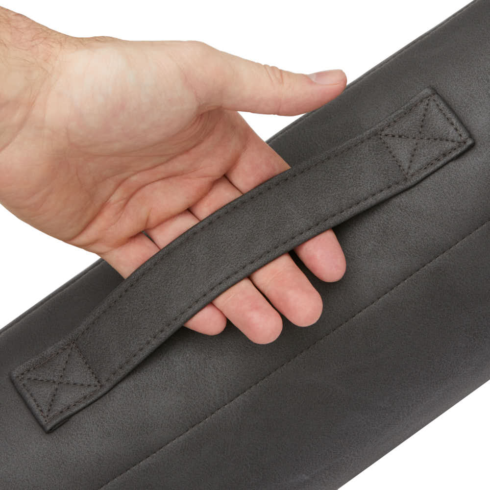 Die Dog Travel Mat Teddy macht Träume für reisefreudige Hunde und Besitzer wahr. Dank ihrer Steppfüllung ist die Hundematte bequemer als viele Hundebetten und dennoch sehr mobil . Dieser mobile Schlafplatz bietet einfach alles, was Sie und Ihr Hund sich wünschen und überzeugt durch seine zeitlose Optik. Umhüllt von veganem dunkelgrauem Leder bildet die mit Klettverschluss befestigte beige Teddyplüschmatte den Mittelpunkt flauschiger Gemütlichkeit. Die Hundematte lässt sich einfach zusammenrollen und zusammenfalten und der praktische Tragegriff bietet einen hohen Reisekomfort.