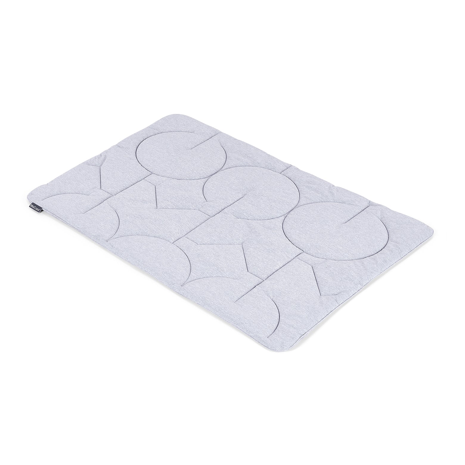 Die Steppdecke Linea besteht auf der einen Seite aus einem samtigen italienischen Fleecestoff und auf der anderen Seite aus einem Stoff in Mattoptik mit dezentem MiaCara-Initialsteppmuster.