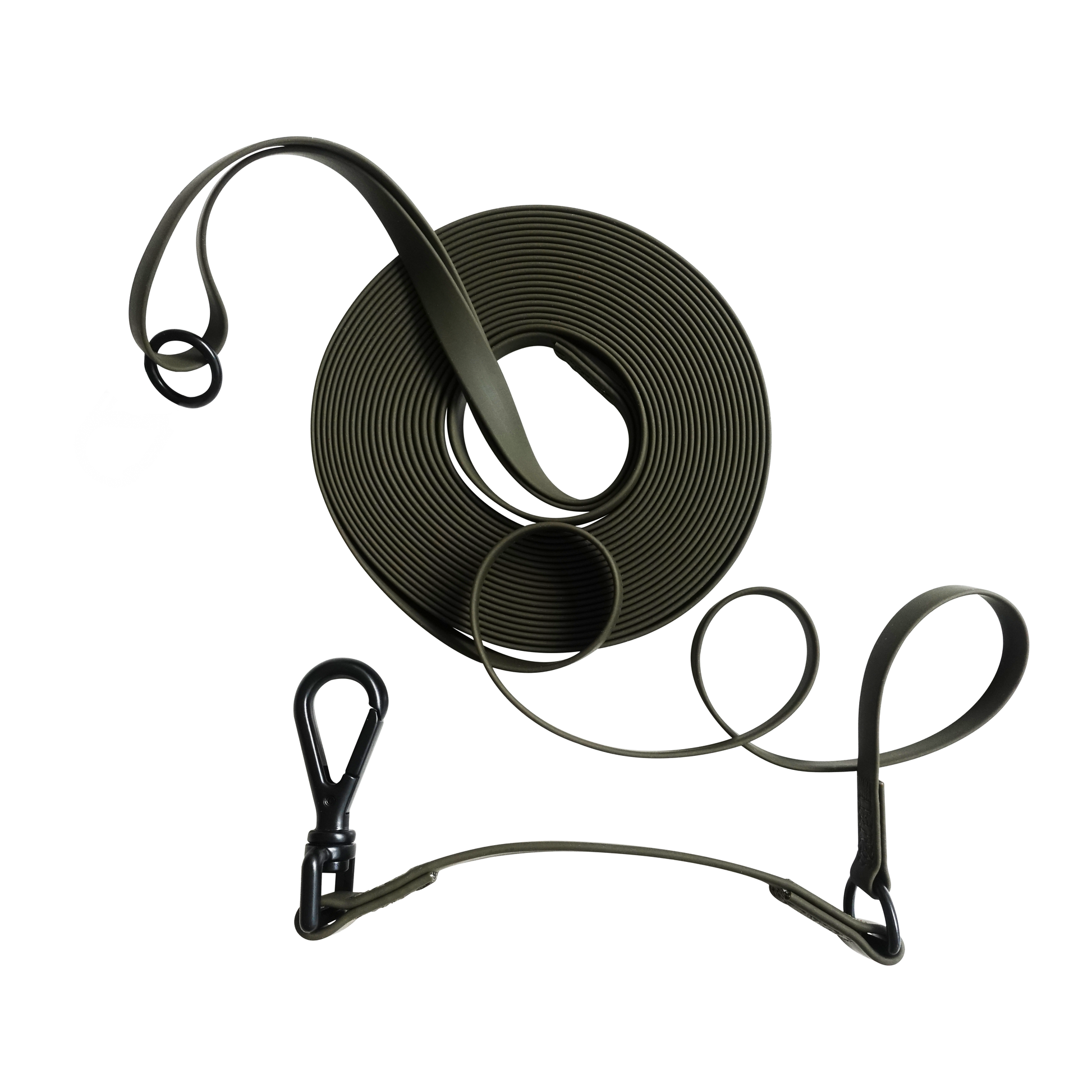 Diese lange Leine darf nicht als Zurrgurt verwendet werden, da durch das Verknoten das Material beschädigt wird. Verknoten Sie die lange Leine nicht. Dieses Produkt ist nicht kau- oder schnittfest.