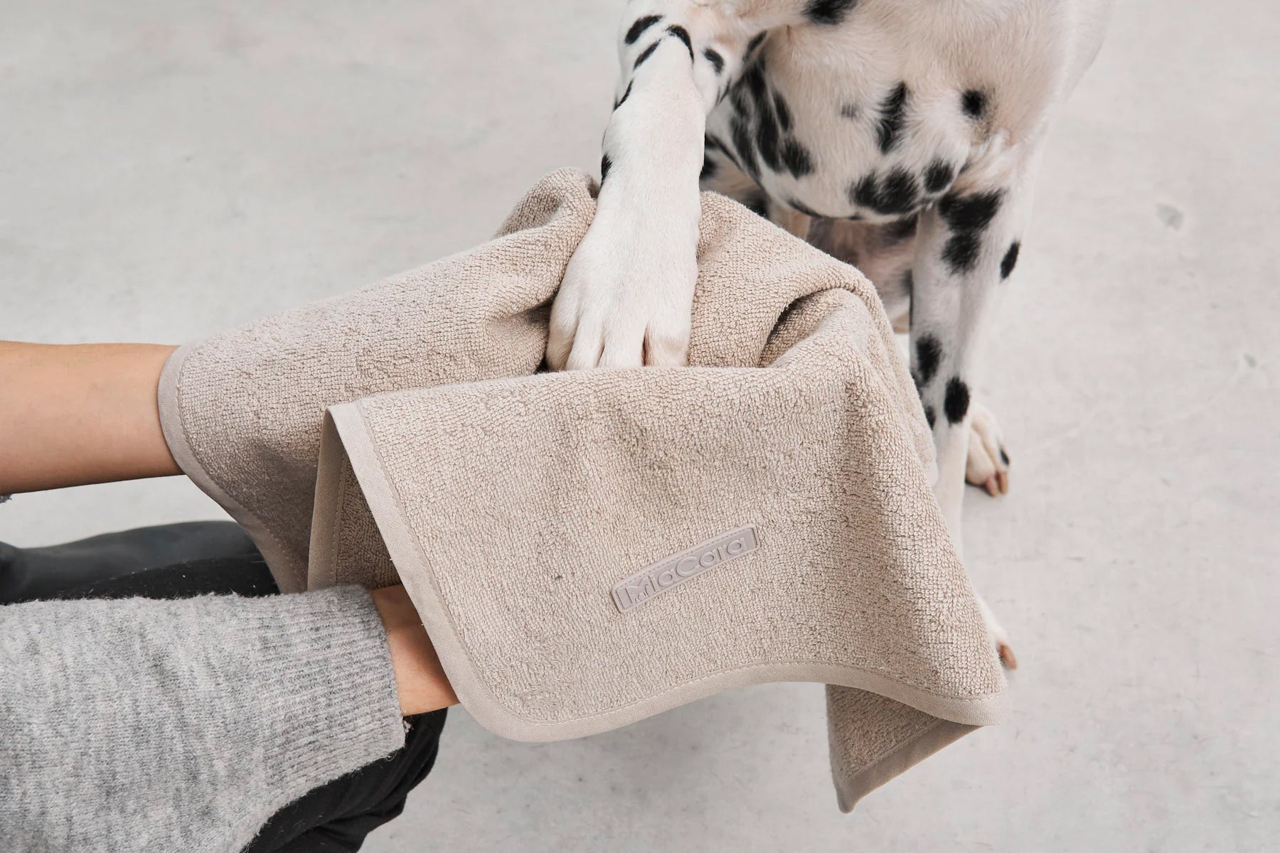 Der besonders weiche Baumwoll-Frotteestoff leitet Feuchtigkeit und Schmutz nicht nur von der Oberfläche, sondern auch aus der Unterwolle Ihres Hundes.