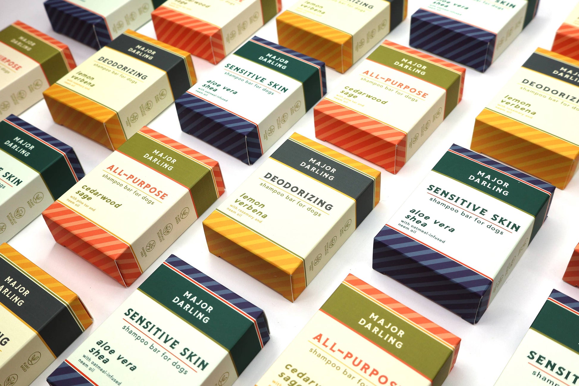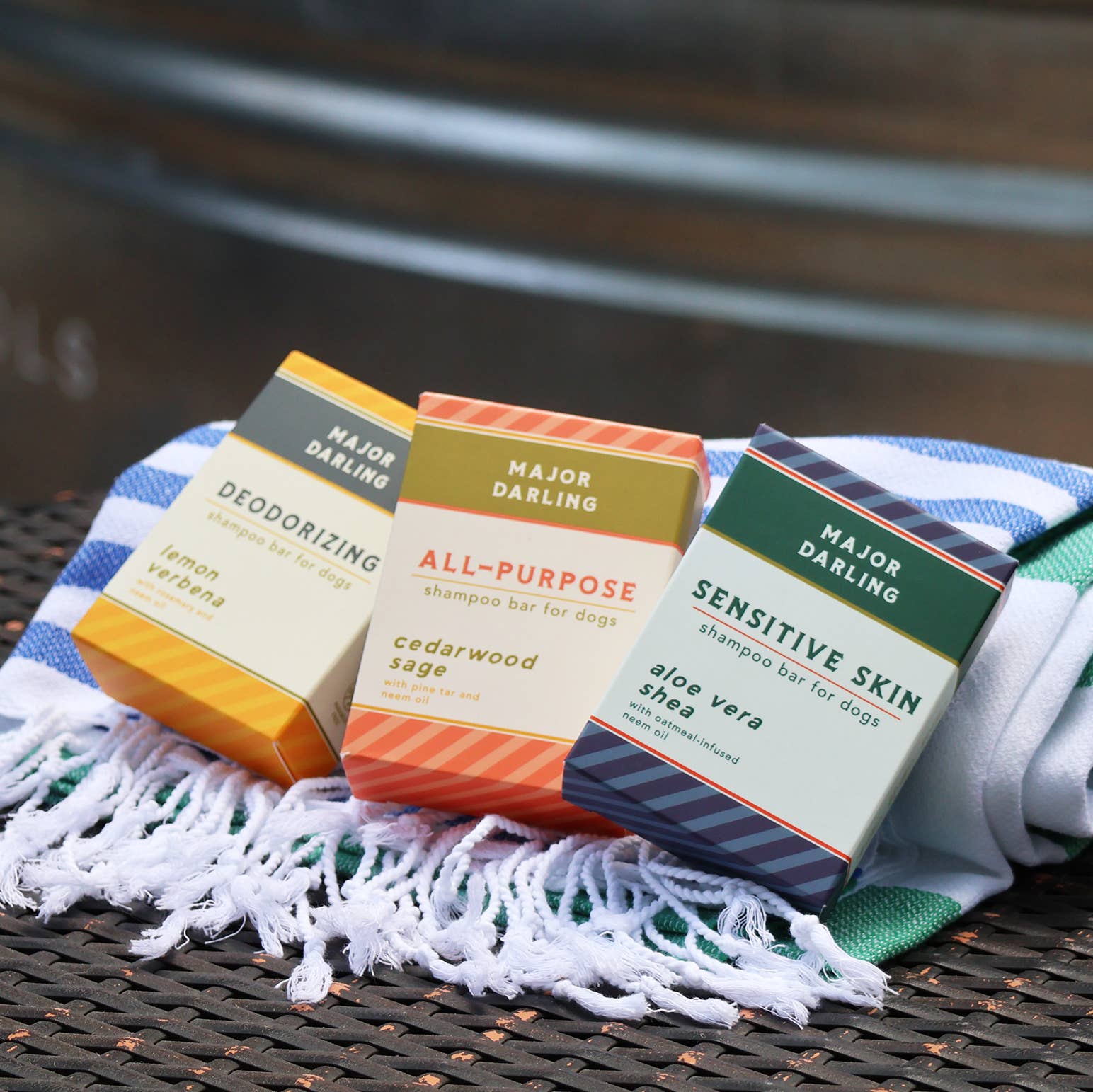 Major Darling's cold-processed Dog Shampoo Bars are specifically crafted for dogs. An ideal formula for all kinds of dogs, the all-purpose dog shampoo bar includes pH-balancing pine tar, nourishing neem oil, and a light, natural scent. It'll leave your pup smelling fresh and outdoorsy-clean.