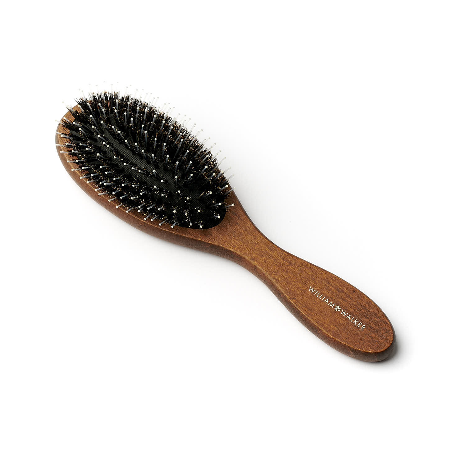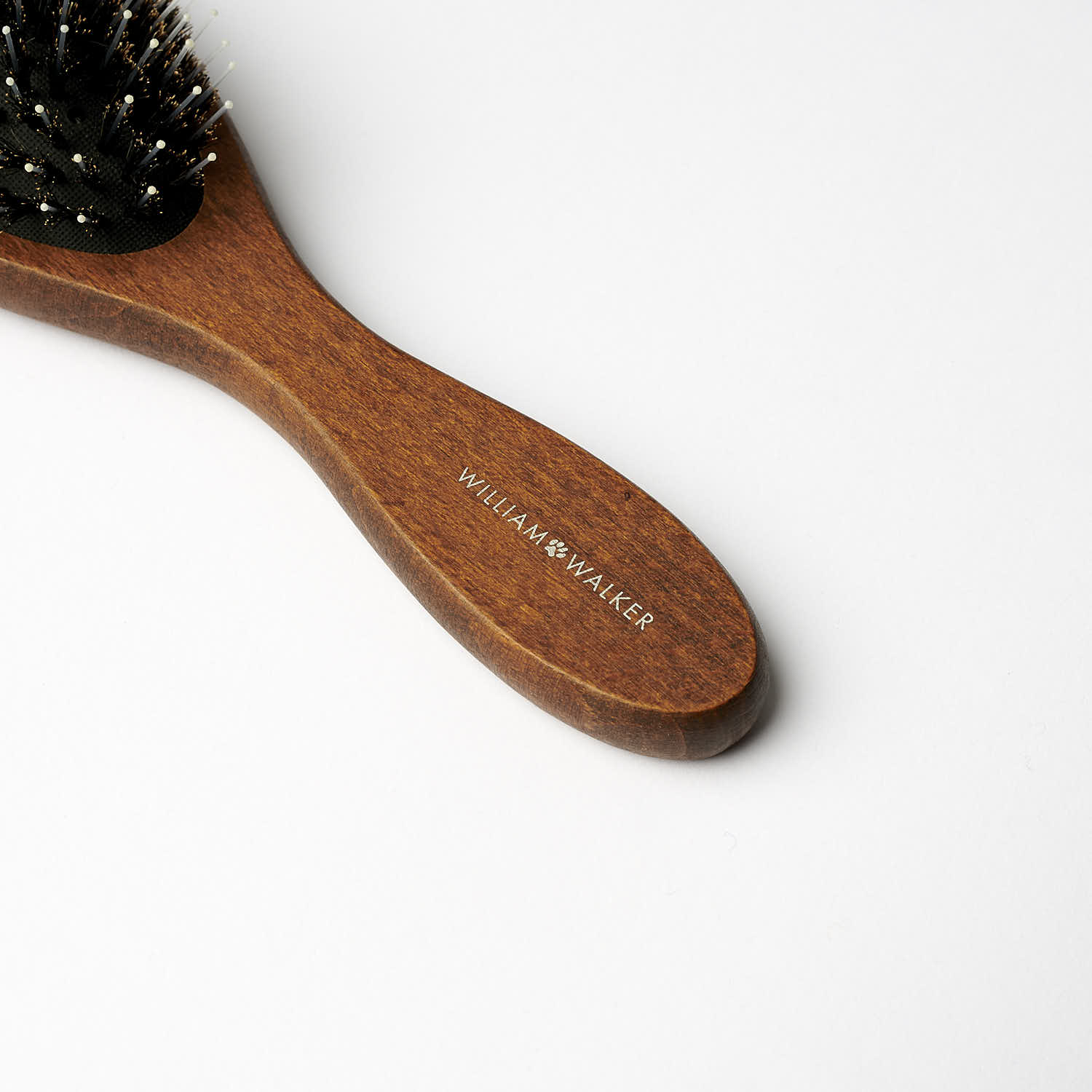 The William Walker Long Hair Brush “Resolve” is the perfect brush for dogs with long and medium length coats. The mixture of natural bristles and rounded nylon bristles let “Resolve” optimally comb through the fur and at the same time be gentle to the dog’s skin. Especially for dogs with longer fur it is a great advantage to anchor brushing as a regular ritual. Tangles are not pretty for anyone and can be best reduced by a timed coat care routine. The dog brush is made of high-quality beech wood in Germany and comes from sustainable forestry. Brushing has a calming effect on the dog and helps to improve circulation.