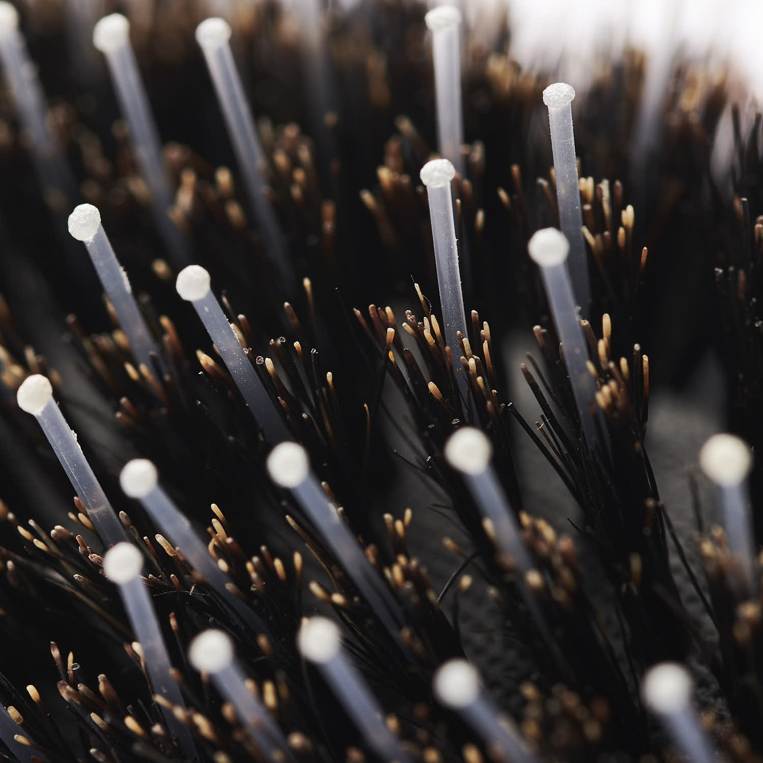 100% natural bristles and nylon pins with ball ends. Made from FSC® certified beech wood