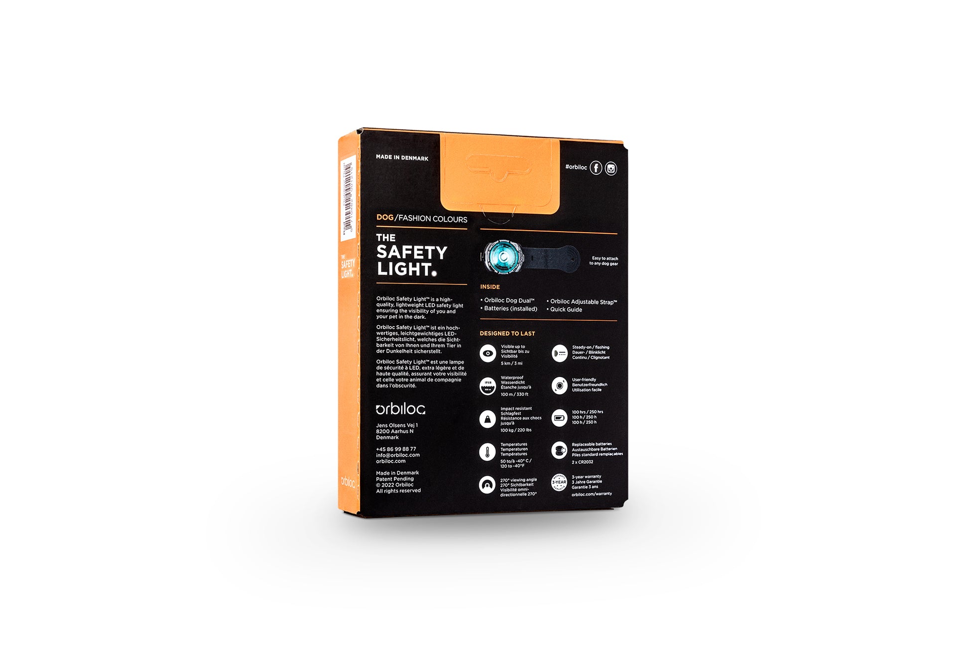 To ensure top quality, the Orbiloc Dog Dual is manufactured in Orbiloc’s own factory in Aarhus, Denmark.